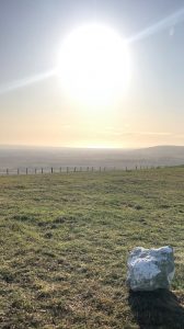 My long strides in carver’s boots across the chalk landscape at Firle Beacon, in the lark-light of the Sussex Downs, and the slow palsh* I take on the Bideford-black beach at Bucks Mills in North Devon: these are taken with certainty; knowledge that I belong in these places. There is a rhythm of heel-space toe-space, and the breath begins to find a pace to accompany this.