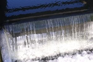 One weir is built across the river near the village of Upper Seagry. We had tramped all morning across farmland, following muddy farm tracks around arable fields, only aware of the river by the line of trees following its banks. Then the path took a sharp turn and led over a footbridge built onto a substantial modern weir; here at last we had a good view of the river. Under our feet the water poured over a series of concrete sills, dropping maybe fifteen feet in all before resuming its steady flow. A steel gantry held the mechanism for three huge sluice gates that controlled the flow of water. Today these were fully open, and as the water poured over the sills we could see it in several different forms: hanging just above the top sill, oily blue, darkly mirroring the sky; falling in a smooth sheet down the face of the weir, sparkling with light and offering a fragmented reflection of the bridge; breaking into cataracts that fell like braids into the foaming mass of water pounding on the concrete ledge; tumbling chaotically over the next sill; and so on down. Upstream, the dull green rectangles of the gantry framed our view of the river, its banks supporting alder and birch, disappearing round a bend. Downstream, curving vortices of white foam covered the surface, the sunlight reflecting in sparkling fragments of light; then, maybe thirty yards below the weir, the river once again resumed its placid flow between banks of trees and bushes. The man-made weir seemed both to create the river and punctuate its placid flow with excitement and drama.