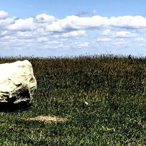 I wait a few seconds and tap along the line again then pause to hear the sound emitted by the stone.