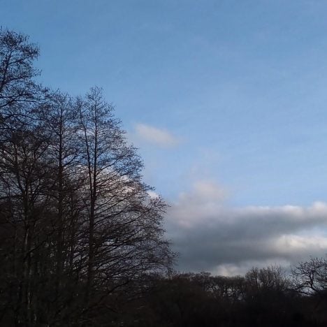 I found myself in a landscape still held in the tail end of winter. The birch, previously aflame with the colours of their autumn leaves, showed their exposed skeletons of deep chestnut branches…