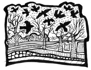 A fluttering family of long-tailed tits pecks away at the caged fat balls, quickly, before sparrows get wind of the feast. Maybe six of them, possibly more. Hard to tell as they are never still. Sated, they flit to a nearby cherry tree where they break their silence with a chorus of ‘si-si-si’, for now it doesn’t matter who hears them. ‘Let the sparrows come,’ they call.