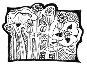 From glamorous to almost comical. Poppies that wore their purple tissue petals like starlets now stand undressed, restyled, transfigured. Smooth green heads with flat-top toupees stand stiffly in the borders, each keeping safe a treasury of seeds.